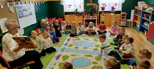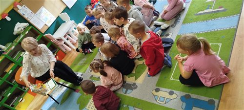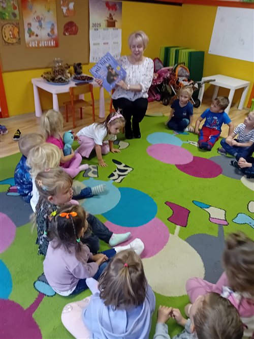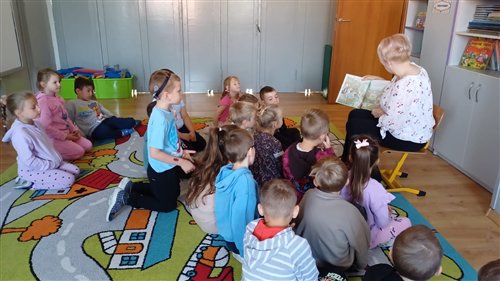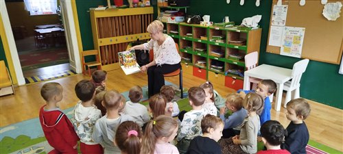 W dniu Ogólnopolskiego Dnia Głośnego Czytania gościliśmy w naszym przedszkolu panią Elę z Miejskiej Biblioteki Publicznej. Dzieci z ogromnym zainteresowaniem słuchały pięknie czytanych bajek i wierszy, a także aktywnie uczestniczyły w rozmowach o bohaterach literackich. Spotkanie przebiegało w miłej atmosferze, pełnej radości i uśmiechu. Była to doskonała okazja, aby zachęcić najmłodszych do sięgania po książki i odkrywania magii literatury. Pani Bibliotekarka zaprosiła również dzieci wraz z rodzinami do odwiedzenia Biblioteki i wspólnego korzystania z jej bogatej oferty. Dzieci podziękowały za wizytę.