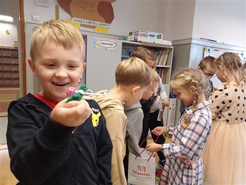 W naszym przedszkolu obchodziliśmy wyjątkowy Dzień Chłopaka. Dziewczynki od rana przygotowywały dla kolegów niespodzianki – laurki. Chłopcy byli bardzo zaskoczeni i ucieszeni, gdy otrzymali prezenty. Następnie wszyscy wspólnie bawili się w ulubione gry i zabawy ruchowe, które sprawiły dużo radości całej grupie. Nie zabrakło również wesołych piosenek i tańców. Po zabawie dzieci usiadły do stołów, gdzie czekał na nich słodki poczęstunek. Ten dzień był pełen uśmiechów, przyjaźni i dobrej zabawy. Chłopcy poczuli się wyjątkowo, a dziewczynki z dumą wręczały swoje niespodzianki.