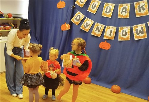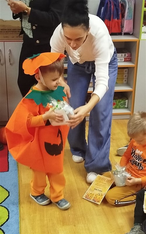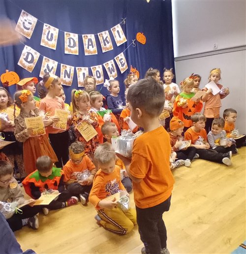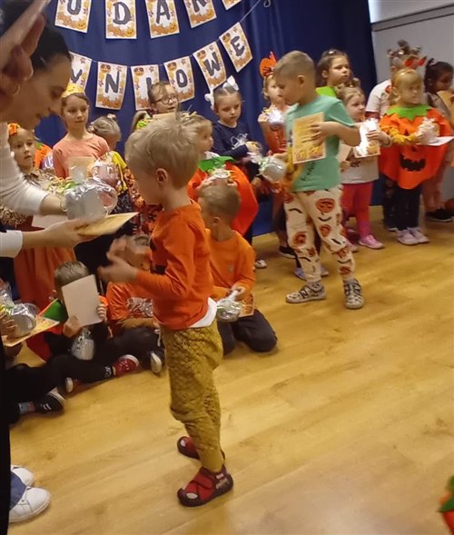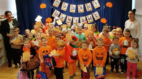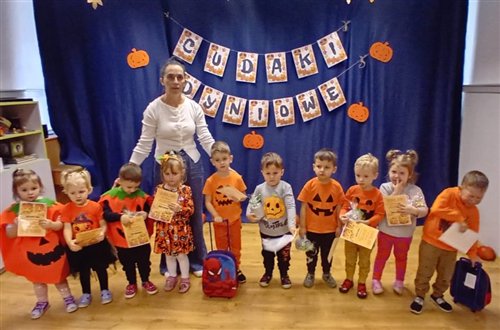 W naszym przedszkolu odbył się wyjątkowy konkurs plastyczno-techniczny „Dyniowe Cudaki”, który towarzyszył obchodom Dnia Dyni. Zadaniem dzieci i ich rodziców było wspólne przygotowanie dyniowej ozdoby – wesołej, pomysłowej i niepowtarzalnej. Prace można było podziwiać na wystawie w holu przedszkola, gdzie wszystkie dynie zachwycały kreatywnością, kolorem i fantazją wykonania. Na wystawie znalazły się dynie-przytulanki, zwierzątka, czarodziejskie postacie i bajkowe stwory. Każda praca była oryginalna i wyjątkowa, a w każdej widać było ogromne zaangażowanie całych rodzin. Komisja konkursowa miała bardzo trudne zadanie, ponieważ wszystkie „Dyniowe Cudaki” zasługiwały na wyróżnienie. Rozstrzygnięcie konkursu odbyło się podczas obchodów Dnia Dyni. Zwycięzcami zostali: I miejsce – Marika z grupy „Muchomorki” II miejsce – Szymon i Franek z grupy „Jeżyki” oraz Leon z grupy „Muchomorki” III miejsce – Filip z grupy „Muchomorki” Wszyscy uczestnicy otrzymali dyplomy i drobne upominki. Konkurs „Dyniowe Cudaki” przyniósł wiele radości, a wspólna praca dzieci i rodziców udowodniła, że dynia może być nie tylko smaczna, ale i niezwykle inspirująca!