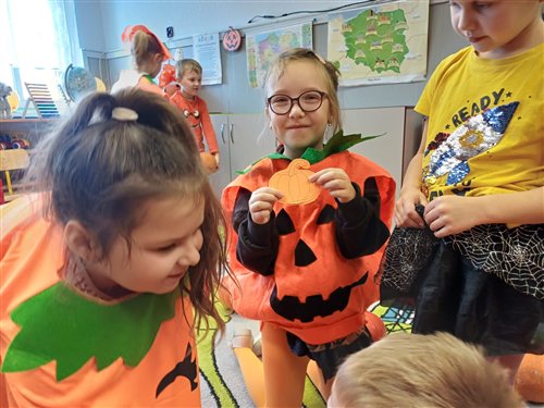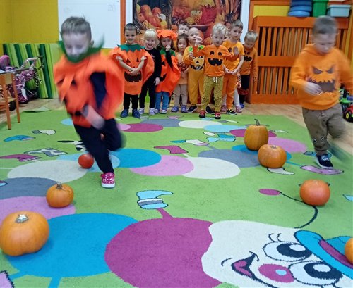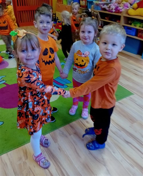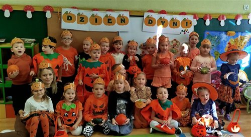 W naszym przedszkolu odbył się wyjątkowy Dzień Pomarańczowy – Święto Dyni, który wprowadził wszystkich w jesienny nastrój. Już od rana przedszkolne sale rozświetliły się kolorem pomarańczowym – dzieci przyszły ubrane w stroje w tym ciepłym odcieniu, a niektórzy przebrali się nawet za wesołe dynie! Dzień rozpoczęliśmy rozmową o dyni – dzieci poznały jej różne odmiany, dowiedziały się, gdzie rośnie, jakie ma właściwości zdrowotne oraz jak można ją wykorzystać w kuchni. Następnie przedszkolaki wzięły udział w dyniowych zabawach ruchowych, takich jak „Turlanie dyni”, „Dynia w tunelu” czy „Zbieramy dyniowe nasiona”. Wszyscy bawili się znakomicie, rozwijając przy tym sprawność i współpracę w grupie. Nie zabrakło także działań plastycznych – dzieci tworzyły prace z wykorzystaniem papieru, farb i bibuły, tworząc piękne dyniowe kompozycje. Powstała nawet wystawa prac, którą mogli podziwiać rodzice. Na zakończenie dnia każdy przedszkolak otrzymał medal Przyjaciela Dyni i wspólnie zjadł dyniowe ciasteczko. Był to dzień pełen radości, kreatywności i jesiennych barw, który na długo pozostanie w pamięci wszystkich przedszkolaków.