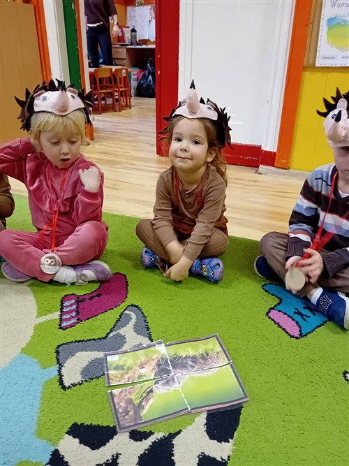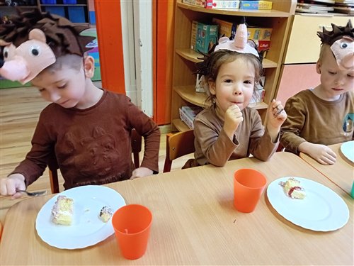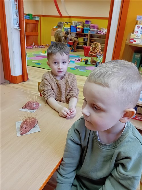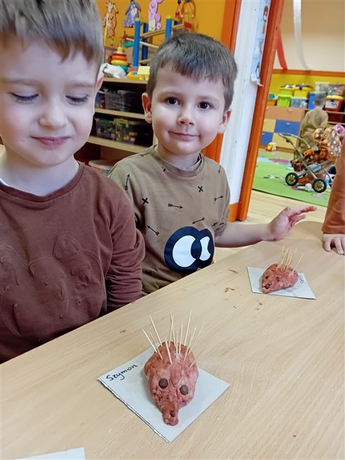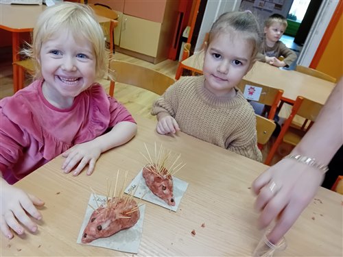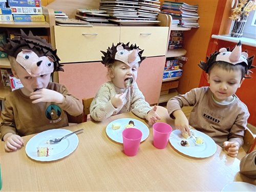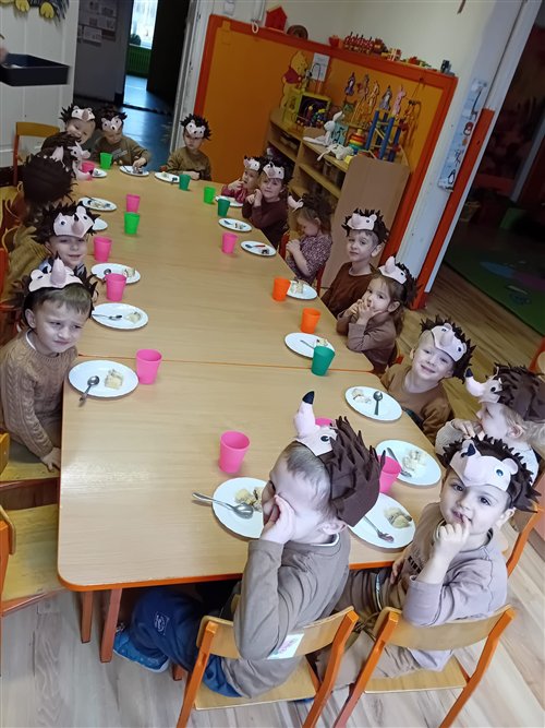 Dziś w naszej grupie przedszkolnej „Jeżyki” obchodziliśmy wyjątkowe święto – DZIEŃ JEŻA! To był niezwykle radosny i pełen wrażeń dzień. Dzieci poznały wygląd i zwyczaje jeży, dowiedziały się, jak te małe zwierzątka przygotowują się do zimy, a także tańczyły przy wesołych piosenkach o jeżach. Nie zabrakło również wspólnego śpiewania „Sto lat” przy przepysznym torcie, po czym wszyscy zasiedliśmy do stołu, by spróbować ciasteczek w kształcie jeżyków. Po słodkiej uczcie dzieci z masy solnej formowały własne jeżyki – każdy inny, wyjątkowy! Pani Magda, mama Igorka, podarowała nam drewniane jeżyki z imionami, a pani Ania, mama Szymona, przygotowała dla każdego drewniany medal. Pyszny tort upiekła pani Natalia, mama Blanki, a ciasteczka – pani Kasia, mama Nikodema. Jeżyki z całego serca dziękują rodzicom za ogromne zaangażowanie! Dzięki Wam to był niesamowity, pełen ciepła dzień!