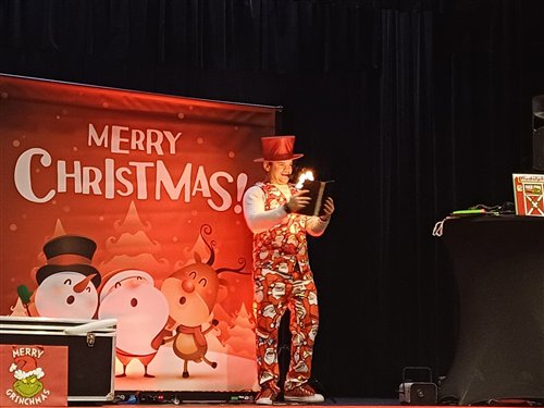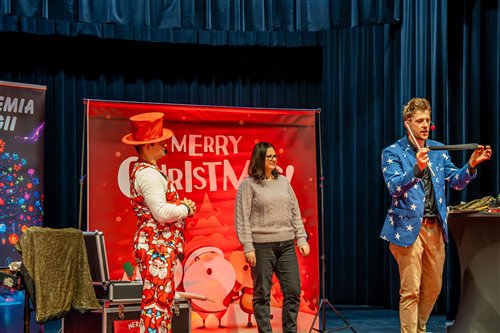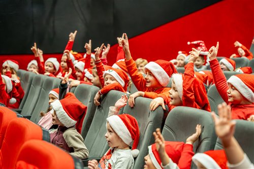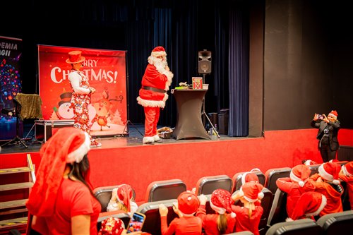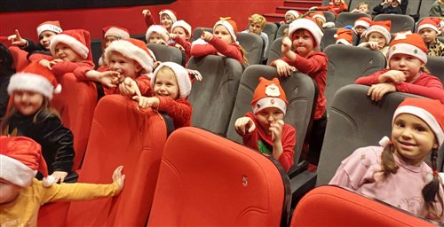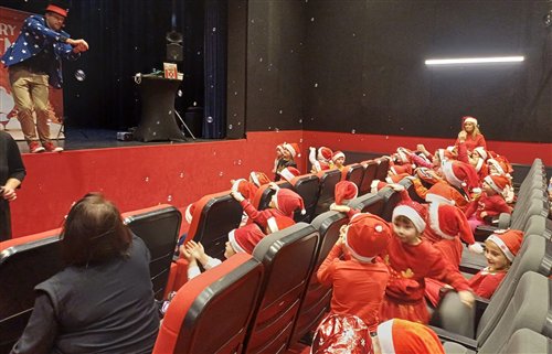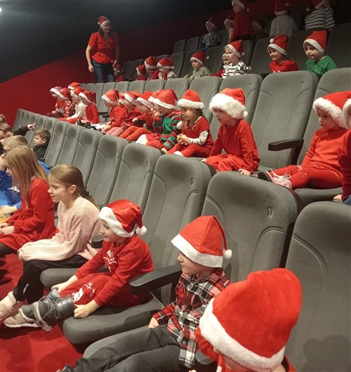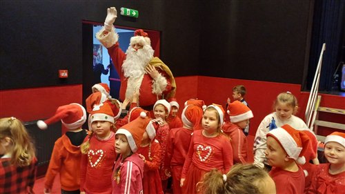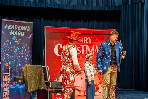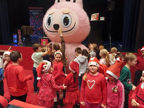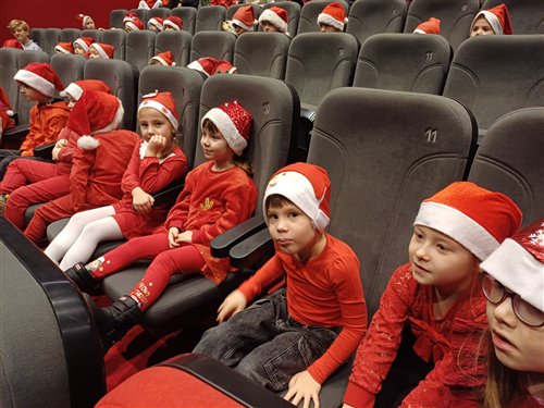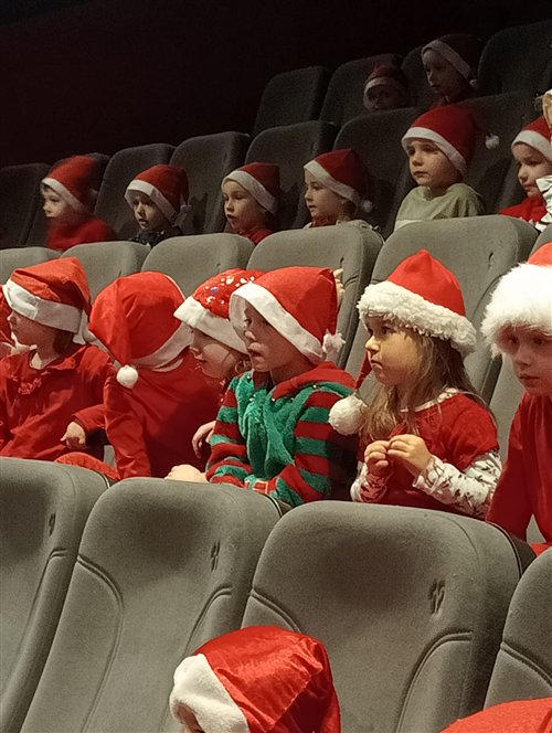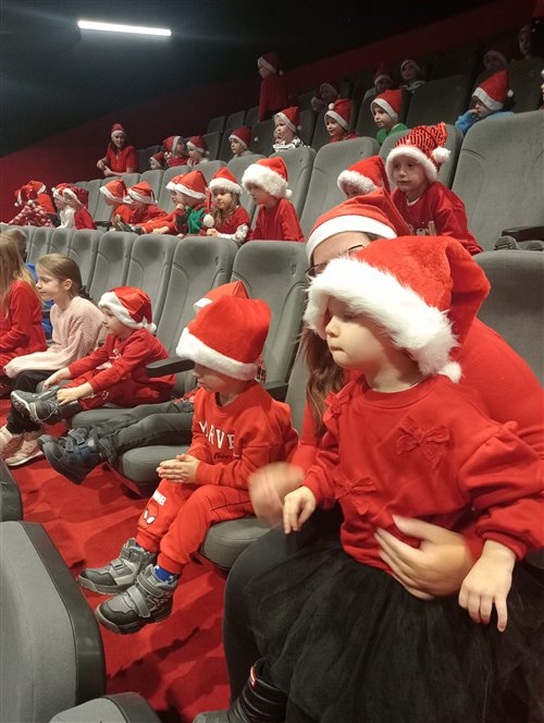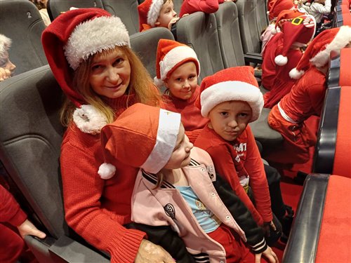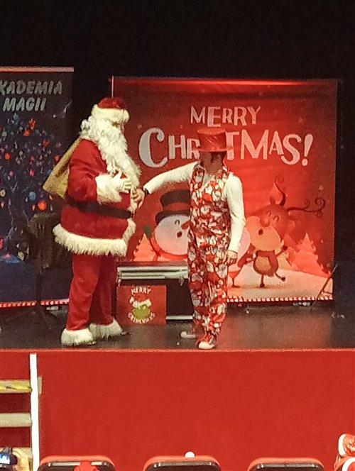 Dzieci z naszego przedszkola zostały dziś zaproszone do Sławieńskiego Domu Kultury, gdzie odbyły się wyjątkowe animacje ze Skrzatem Bandziorkiem! Już od pierwszych chwil spotkania sala wypełniła się radosnym śmiechem, energią i prawdziwą świąteczną atmosferą. Skrzat Bandziorek, znany ze swojego poczucia humoru i niezwykłej kreatywności, zadbał o to, aby każde dziecko czuło się zaangażowane i w pełni uczestniczyło w zabawie. Przedszkolaki brały udział w różnych zadaniach ruchowych, tańcach oraz zabawach rozwijających wyobraźnię. Dzieci z ogromnym entuzjazmem naśladowały ruchami treść piosenek, tworząc wspólnie barwny i pełen energii świąteczny korowód. W programie pojawiły się też pokazy magicznych sztuczek, które zachwyciły najmłodszych i wywołały wiele okrzyków zdumienia. Największą atrakcją wydarzenia było jednak niespodziewane pojawienie się Świętego Mikołaja. Dzieci przywitały go z wielką radością, a Mikołaj obdarzył je ciepłymi słowami, pozdrowieniami i mnóstwem uśmiechu. To wyjątkowe spotkanie dostarczyło naszym przedszkolakom wielu pozytywnych emocji i niezapomnianych wrażeń. Z pewnością długo będą wspominać tę świąteczną, pełną magii wizytę w Domu Kultury.