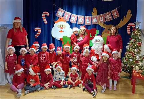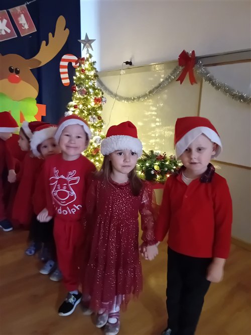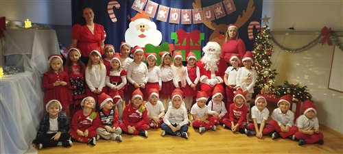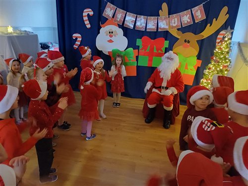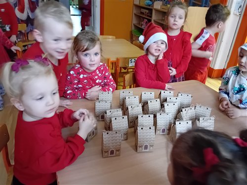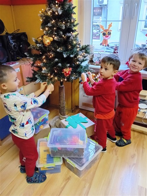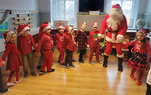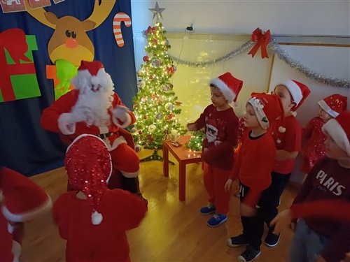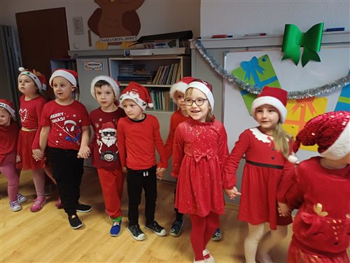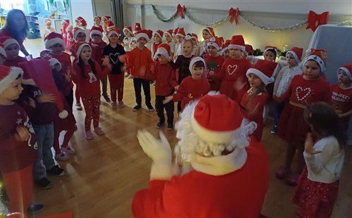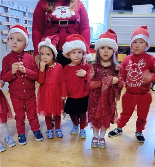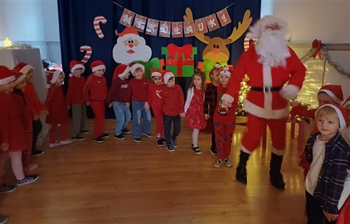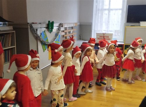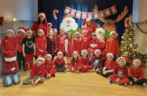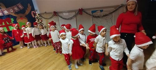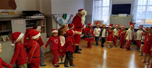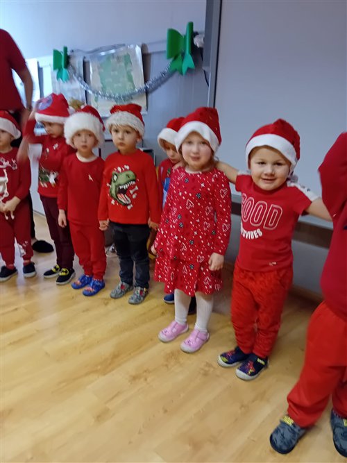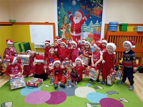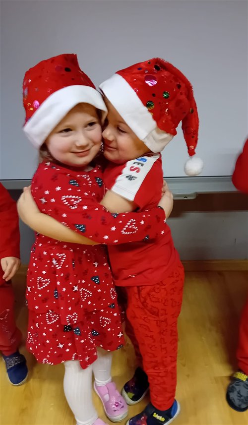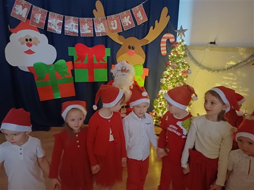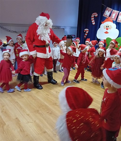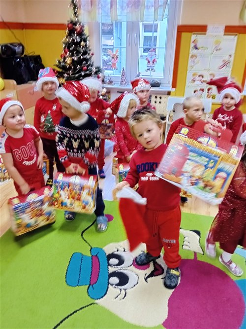 Dziś w naszym przedszkolu panowała wyjątkowa, świąteczna atmosfera, ponieważ odwiedził nas sam Święty Mikołaj. Już od rana dzieci z niecierpliwością wyglądały jego przybycia, a gdy tylko Mikołaj pojawił się w sali, na twarzach wszystkich przedszkolaków zagościł szeroki uśmiech. Podczas wspólnych zabaw, tańców i rozmów dzieci miały okazję bliżej poznać wyjątkowego gościa oraz zaprezentować mu przygotowane piosenki i wierszyki. Mikołaj z uwagą słuchał każdego występu, chwaląc odwagę i zaangażowanie maluchów. Po radosnej części artystycznej nadszedł czas na długo wyczekiwane prezenty. Każde dziecko otrzymało indywidualny drobny upominek, który wywołał wiele zachwytu i radości. Dodatkowo Mikołaj obdarował przedszkolaki nowymi zabawkami do sali, które z pewnością umilą im wspólne zabawy przez kolejne dni. To był dzień pełen emocji, uśmiechów i magicznej atmosfery, który na długo pozostanie w pamięci dzieci.