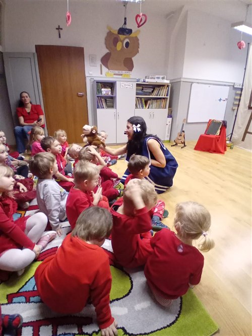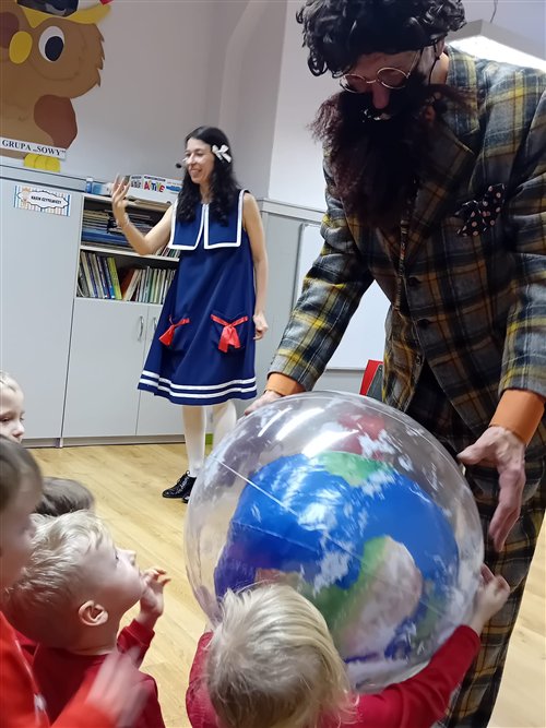 W poniedziałek w naszym przedszkolu odbył się wyjątkowy teatrzyk pt. „Lekcja u Pana Kleksa” – niezwykły spektakl inspirowany twórczością Jan Brzechwy. Przedstawienie przeniosło dzieci w magiczny świat pełen symboli, barw i dźwięków, gdzie wszystko jest możliwe dzięki sile wyobraźni. Główny bohater – Pan Ambroży Kleks – w barwny i pełen humoru sposób pokazał, że wyobraźnia jest najpotężniejszą mocą, jaką posiada każdy z nas. Podczas tej niezwykłej lekcji dzieci przekonały się również, że takie wartości jak prawdomówność, dobroć i wzajemna pomoc potrafią zdziałać prawdziwe cuda. Spektakl przygotował Teatr „Co w gruszy gra” z Poznania. Artyści zabrali nas w bajkową podróż pełną śpiewu, magicznych zaklęć oraz wesołych wierszyków. Każda scena była nową, zaskakującą lekcją, niosącą radosną energię i uśmiech. Dzieci z ogromnym zaangażowaniem uczestniczyły w przedstawieniu, żywo reagując na wydarzenia na scenie. To było niezapomniane spotkanie z teatrem, które na długo pozostanie w naszej pamięci!