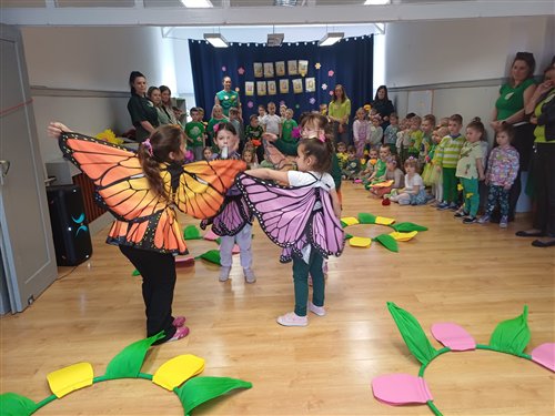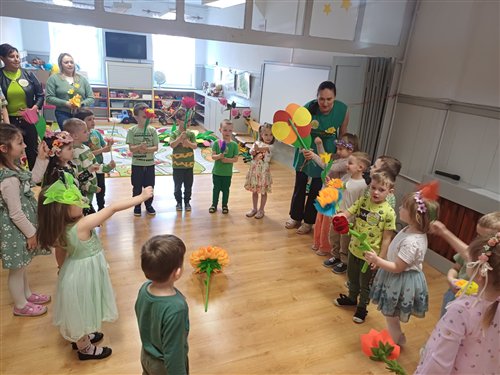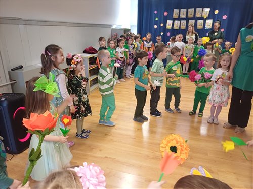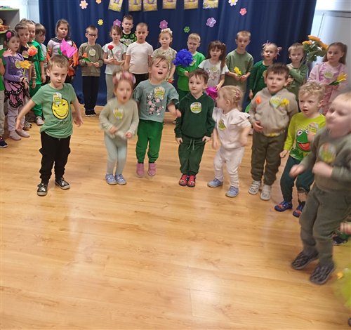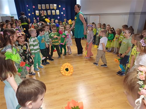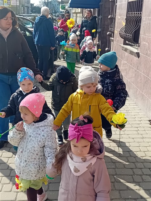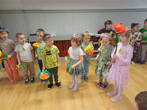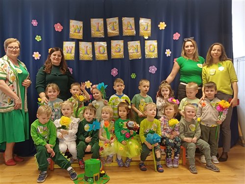 20 marca odbyło się zajęcie integracyjne z okazji Pierwszego Dnia Wiosny. Podczas spotkania dzieci miały okazję aktywnie i radośnie świętować nadejście nowej pory roku. Spotkanie rozpoczęło się prezentacją wiosennej piosenki przez grupę „Jeżyki” i „Muchomorki”. Następnie dzieci z grupy „Sowy” zaprezentowały taniec pełen energii i kolorowych akcentów. Kolejnym punktem była indywidualna prezentacja stroju. Spotkanie zakończyło się wykonaniem pamiątkowego zdjęcia, które uwieczniło radosne chwile spędzone razem. Całe wydarzenie przebiegało w miłej, pełnej zaangażowania atmosferze . Po zajęciach dzieci poszły na pochód ulicami miasta, aby pożegnać zimę i przywitać wiosnę. Niosły kolorowe kwiaty, śpiewały radosne piosenki i machały przechodniom. Słońce świeciło, a powietrze było świeże. Wspólnie cieszyły się nadchodzącą porą roku i nowymi nadziejami, które przynosi wiosna. Dorośli patrzyli z uśmiechem i robili zdjęcia tego wydarzenia.